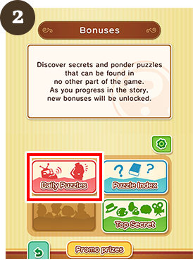 • Select ‘Daily Puzzles’ from the Bonuses screen